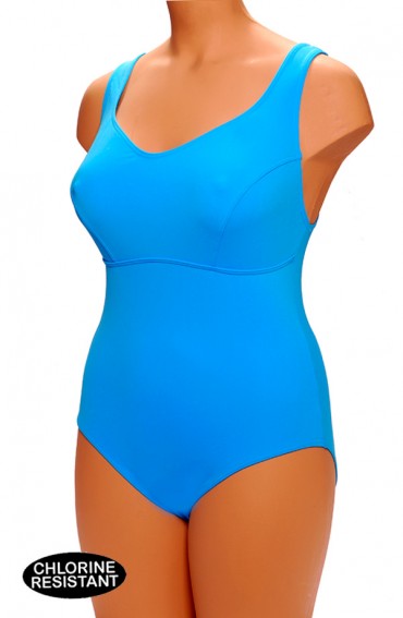 Sportbadpak chloorbestend speiaal voor grotere cupmat met clipsluiting op de rug, lage beenuitsnijding.