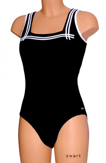 Sportbadpak chloorbestend speiaal voor grotere cupmat met clipsluiting op de rug, lage beenuitsnijding.