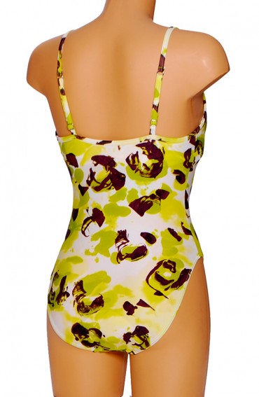 Dames badpak model met overslag in print stof. Voorkant van het badpak is voorzien van een corrigerende power voering en vaste soft-cups.