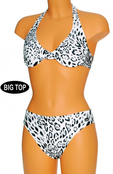 Beugel bikini extra big top D/E -cup met vaste brede bandjes en kliksluiting op rug.