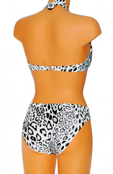 Bikini met bandjes in de nek geknoopt en kliksluiting op de rug.