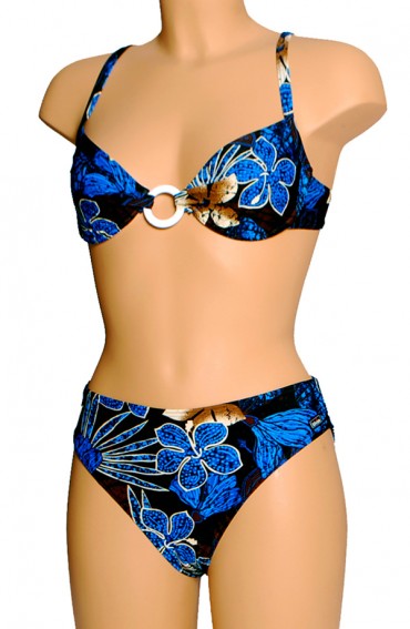 Dames bikini in een fleurige print. Bovenstuk met schuifcupjes. Slip en topje met strik sluiting zodat deze eenvoudig versteld kunnen worden voor een perfecte pasvorm.