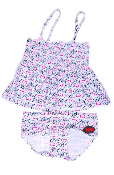 Kleuter tankini. Topje is aan de bovenkant gesmocked. Met vaste bandjes.