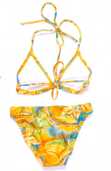 Meisjes bikini met schuifcup. Bandjes in de nek en op de rug.